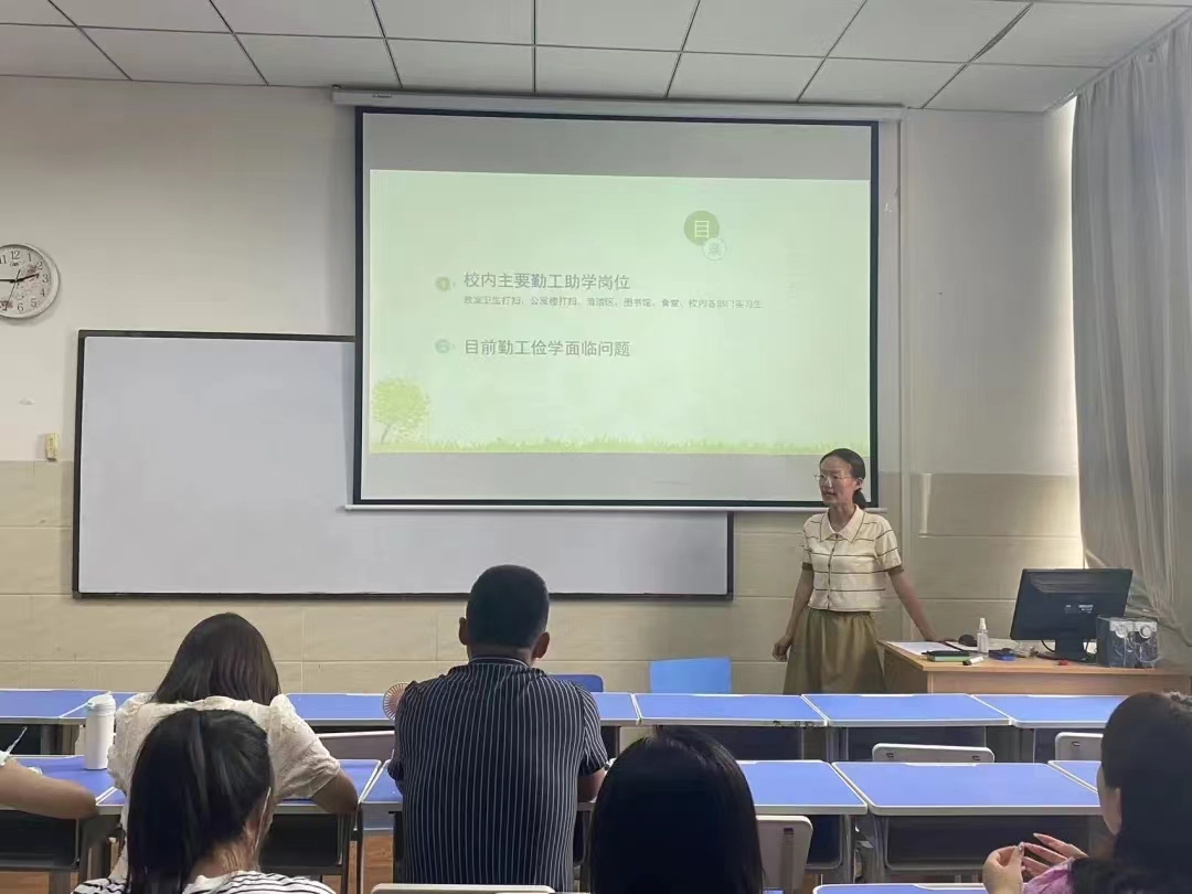 ? ? ? ?培訓(xùn)第二講由負(fù)責(zé)國(guó)際學(xué)院勤工儉學(xué)專項(xiàng)工作孟小路老師對(duì)校內(nèi)主要勤工儉學(xué)崗位進(jìn)行了介紹,包括教學(xué)樓、學(xué)生公寓、圖書館、食堂、校內(nèi)實(shí)習(xí)生等崗位,以及各崗位的主要職責(zé)、工作時(shí)間、工資標(biāo)準(zhǔn)等,鼓勵(lì)有需求的同學(xué)積極參與校內(nèi)勤工儉學(xué)崗位。