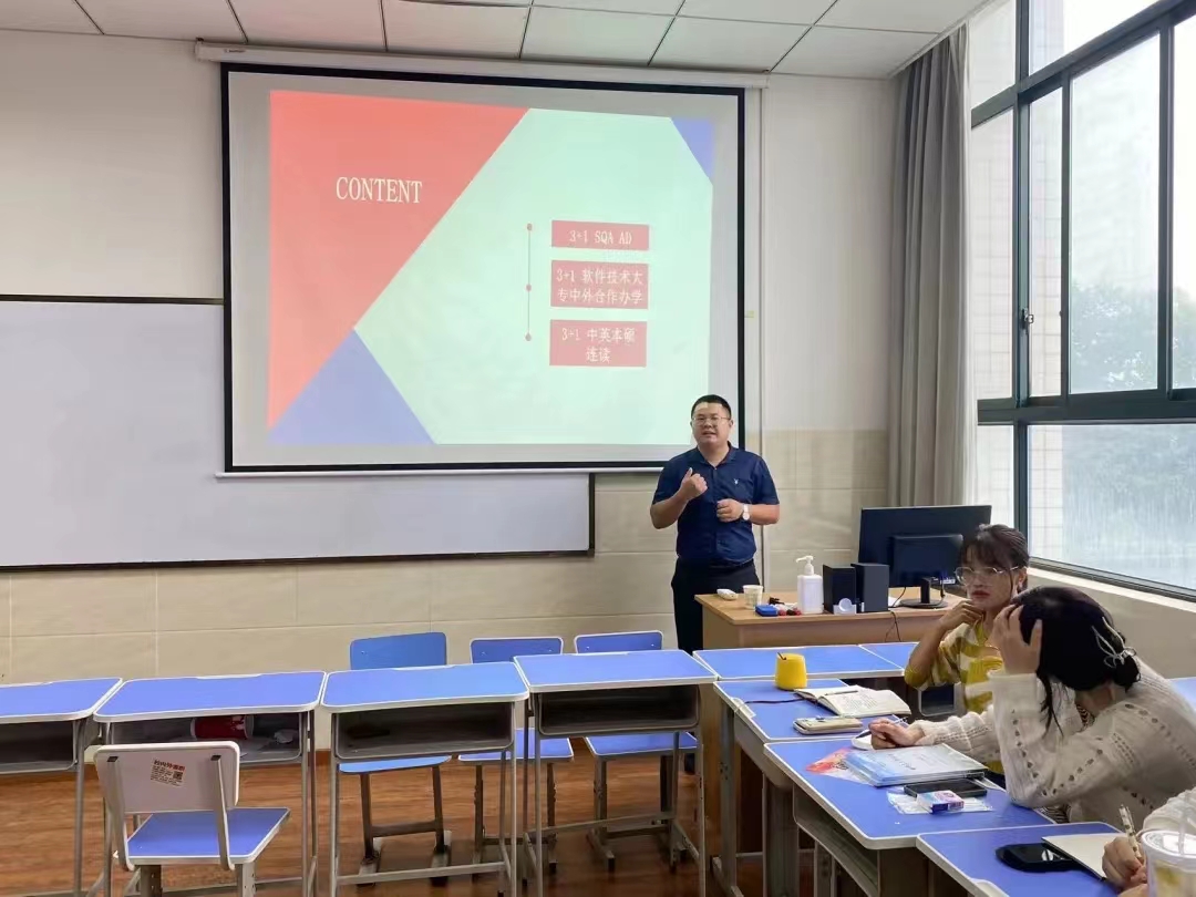 ? ? ? ?培訓(xùn)第一講由曹建設(shè)老師講解我院國(guó)際項(xiàng)目的相關(guān)內(nèi)容。主要包括三個(gè)方面,一是我院開(kāi)設(shè)的SQA AD項(xiàng)目基本簡(jiǎn)介,主要針對(duì)學(xué)生如何通過(guò)該項(xiàng)目獲取更好的升學(xué)以及個(gè)人發(fā)展做了詳細(xì)講解;二是對(duì)軟件技術(shù)(中外合作辦學(xué))、計(jì)算機(jī)科學(xué)與技術(shù)(中外合作辦學(xué))項(xiàng)目做了相應(yīng)的講解和說(shuō)明;三是對(duì)3+1本碩連讀項(xiàng)目做了基礎(chǔ)的詳解,并對(duì)特色項(xiàng)目TESOL進(jìn)行了詳細(xì)介紹,希望各位老師針對(duì)學(xué)生的實(shí)際情況,提供更好的升學(xué)通道選擇。