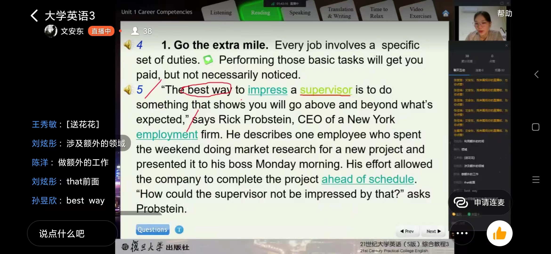 ? ? ? ?大學(xué)英語課程線上教學(xué)秩序有條不紊,教師能夠嚴(yán)格落實教學(xué)任務(wù)安排,課前準(zhǔn)備工作充分,授課態(tài)度認(rèn)真,熟練運(yùn)用線上平臺組織教學(xué),教學(xué)過程規(guī)范,能夠結(jié)合線上教學(xué)特點,注重融入課程思政,教學(xué)效果良好。師生精神飽滿,課堂氣氛活躍,展現(xiàn)了我校新學(xué)期教育教學(xué)新氣象。