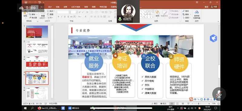 ? ? ? ?9月7日,2022屆大數(shù)據(jù)管理與應用專業(yè)、大數(shù)據(jù)技術專業(yè)入學教育采用在線形式舉辦“云”介紹,旨在幫助新生們開好頭、起好步,更快地融入大學新環(huán)境。
