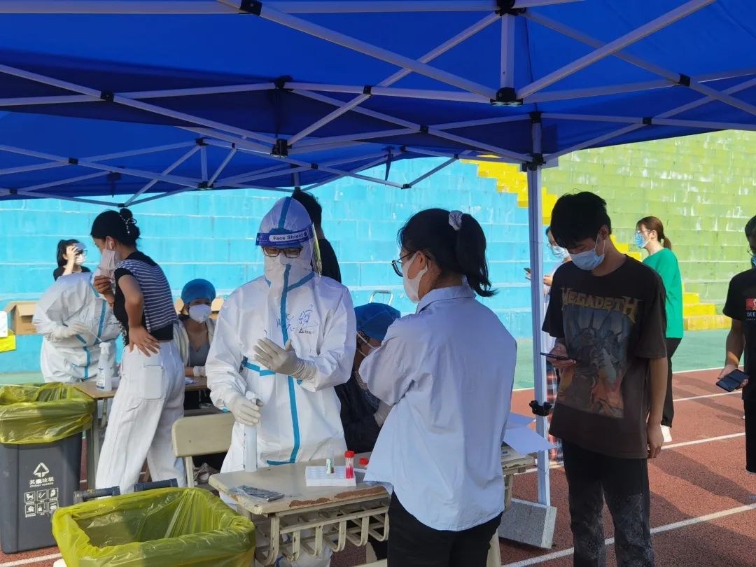 ? ? ? ?核酸檢測過程中,老師們作為核酸檢測的志愿者耐心的一次次消毒、采樣,堅守在自己的崗位上,為學(xué)院防疫工作的順利進行做出了貢獻,以實際行動踐行了使命擔當。