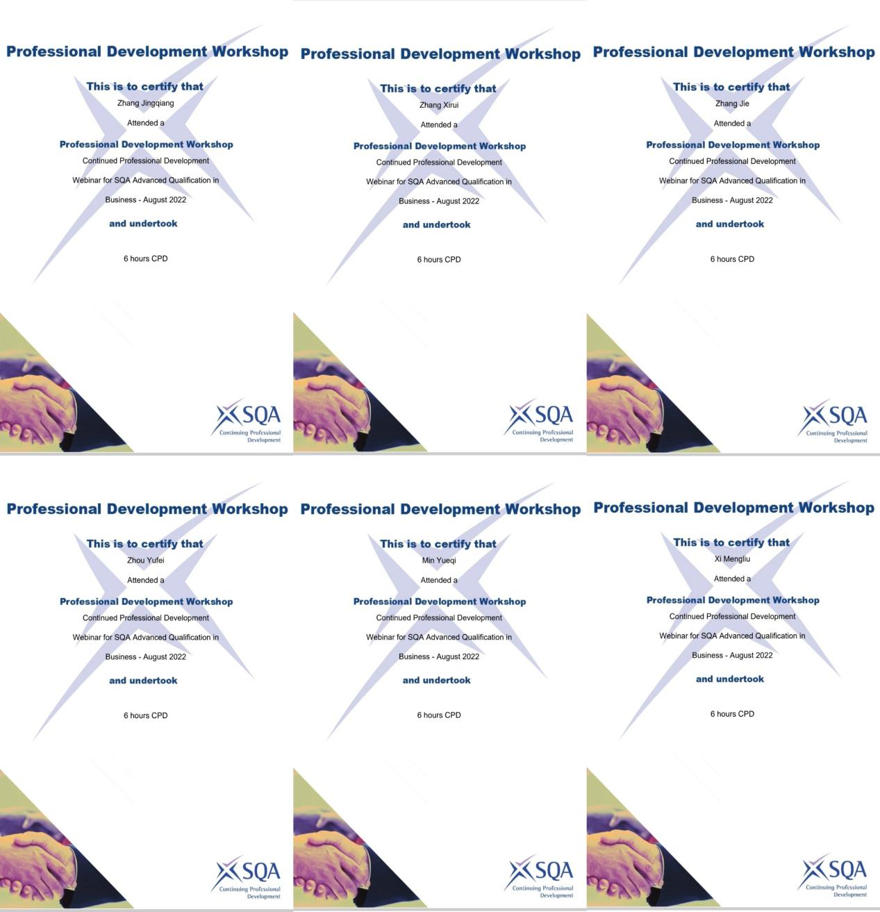 ? ? ? ?2022年秋季,西安科技大學(xué)高新學(xué)院SQA AD項目全體專職教師參加了由SQA(蘇格蘭學(xué)歷管理委員會)及(教育部)中國留學(xué)服務(wù)中心舉辦的兩場大型線上教學(xué)研討會——Professional Development Workshop (SQA Advanced Qualification in Business)及the prescribed course of study in CSCSE SQA program workshop。