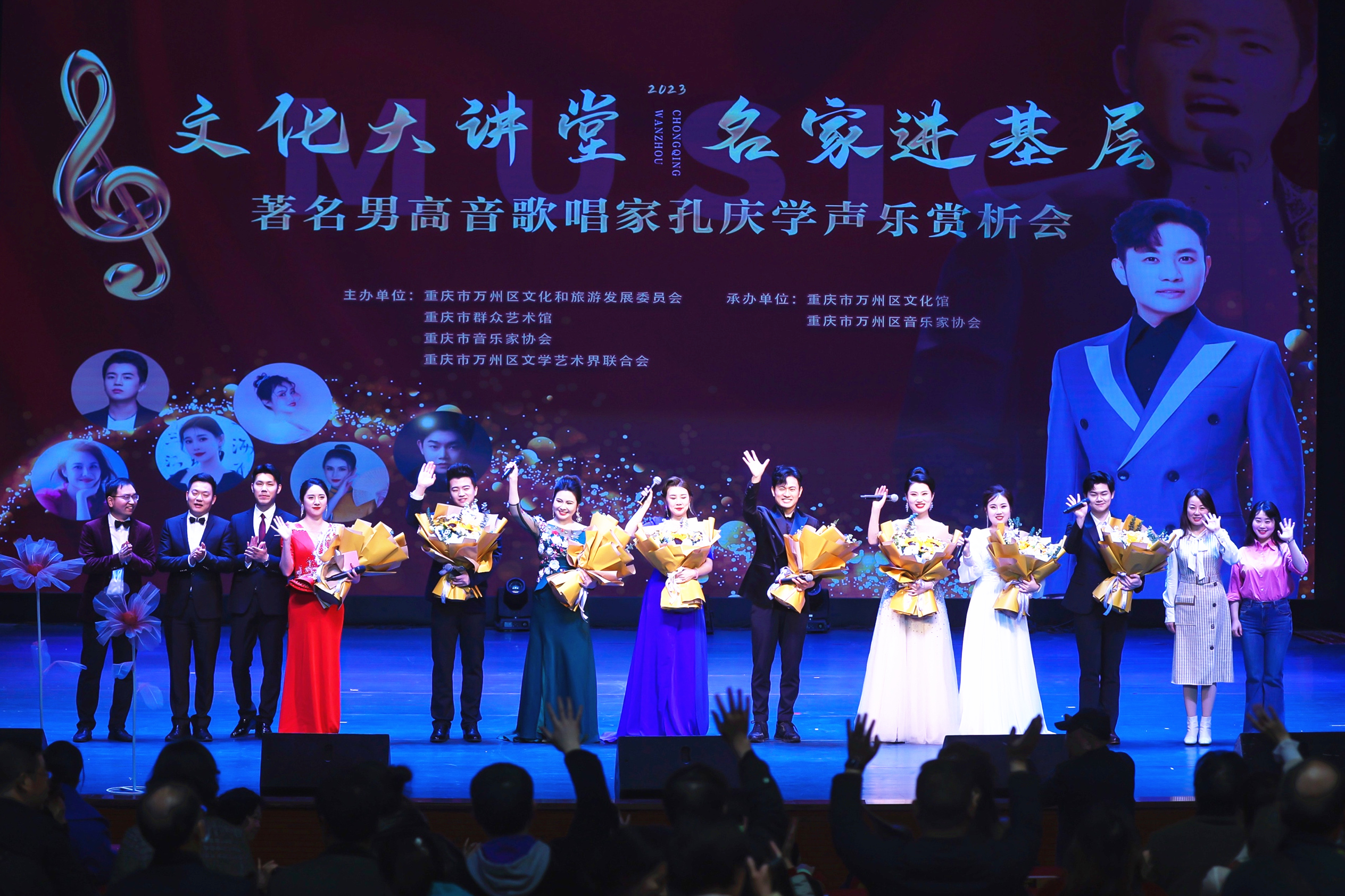 ? ? ? ?為響應(yīng)黨的二十大提出的健全現(xiàn)代公共文化服務(wù)體系,創(chuàng)新實施文化惠民工程,推進(jìn)文化自信自強,鑄就社會主義文化新輝煌。讓高雅藝術(shù)走進(jìn)基層,助力全民藝術(shù)普及,共同推動公共文化服務(wù)更好更快發(fā)展。2023“文化大講堂,名家進(jìn)基層”——孔慶學(xué)聲樂賞析會于3月6日19:30在重慶市萬州區(qū)金獅劇場舉行。