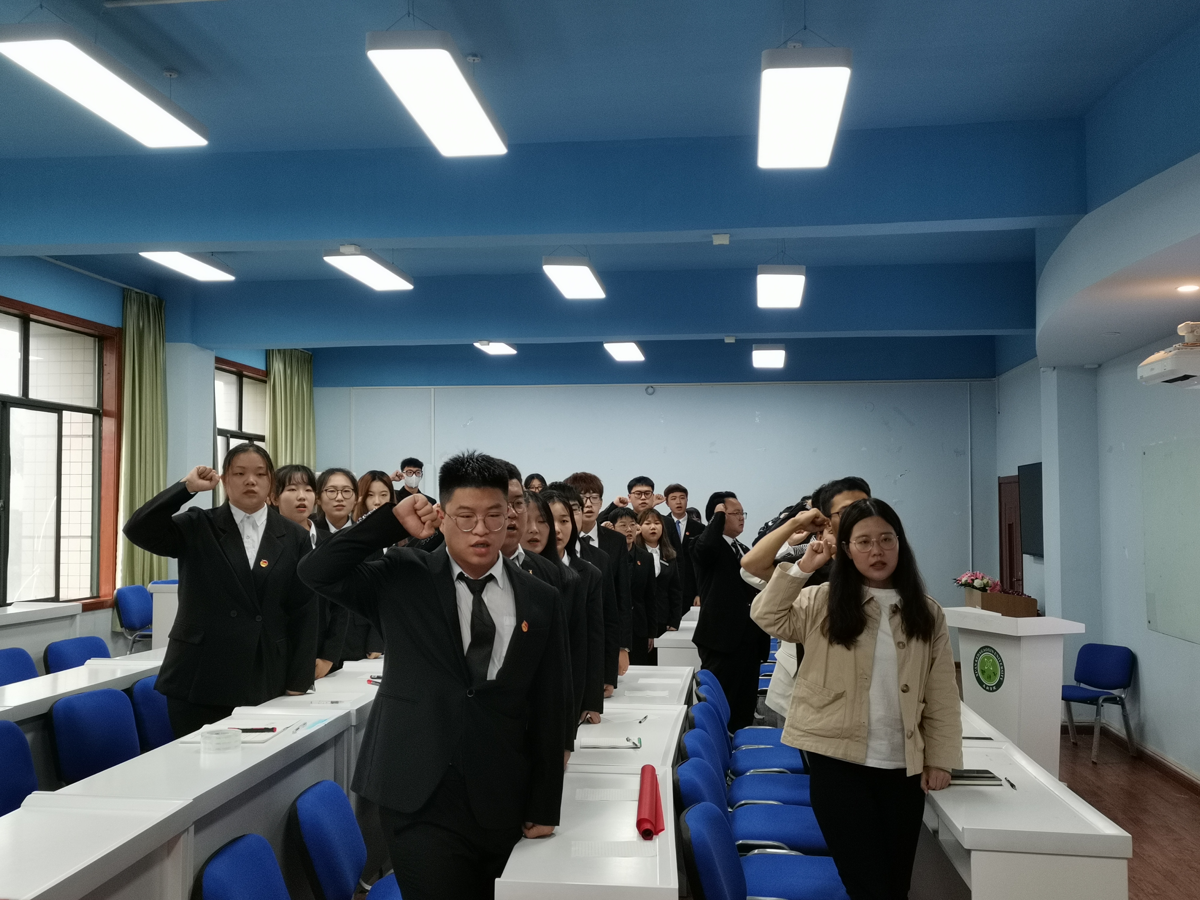 ? ? ? ?會(huì)上,全體成員觀看九一八事變紀(jì)錄片,并由同學(xué)朗誦節(jié)目《松花江上》。朗誦結(jié)束后,全體成員起立面向國旗,默哀一分鐘,向抗日英烈們表達(dá)敬意。學(xué)生代表張棟上臺(tái)發(fā)言并帶領(lǐng)全體成員宣誓。