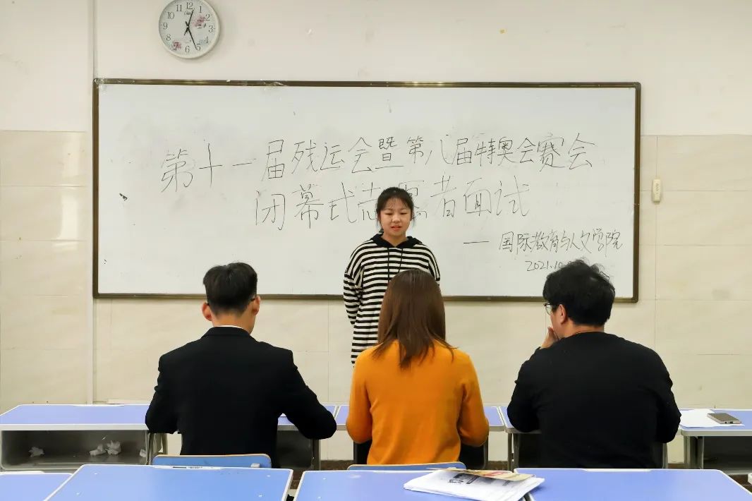 ? ? ? ? 為迎接第十一屆殘運(yùn)會(huì)暨第八屆特奧會(huì)閉幕式,讓更多學(xué)生了解奧運(yùn)體育精神,西安科技大學(xué)高新學(xué)院國(guó)際教育與人文學(xué)院10月8日在南區(qū)國(guó)際樓210、212以及213教室進(jìn)行面試,迎來(lái)了眾多富有志愿精神的國(guó)際青年們前來(lái)參與。本次面試由國(guó)際教育與人文學(xué)院團(tuán)總支書記劉洋老師,輔導(dǎo)員王天一,助理輔導(dǎo)員李洪艷及學(xué)生會(huì)各部門負(fù)責(zé)人擔(dān)任評(píng)委。