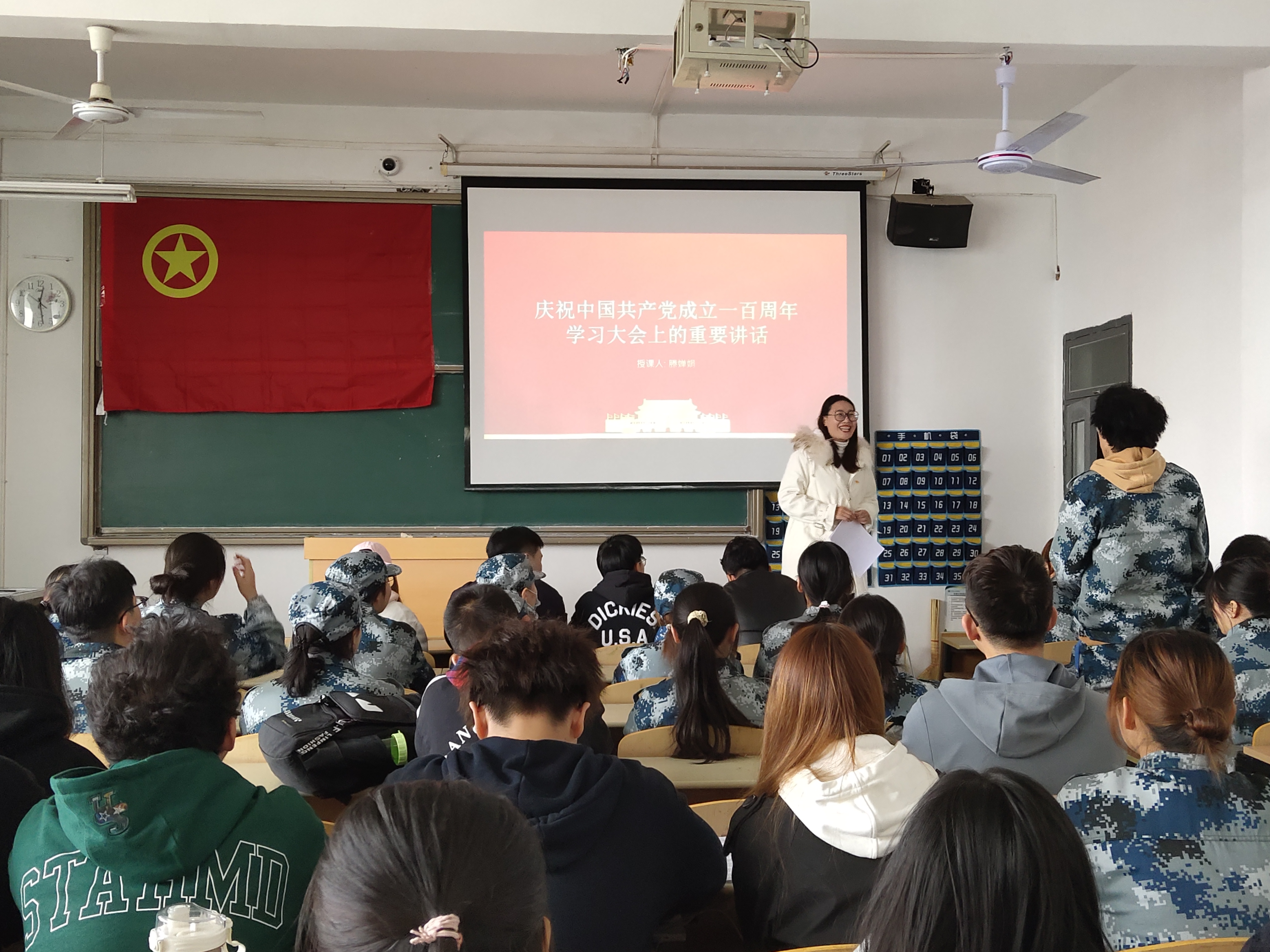 ? ? ? ?會上,學(xué)生處副處長兼團(tuán)委書記滕嬋娟對2020、2021級的學(xué)員講解慶祝建黨一百周年大會會議議程,帶領(lǐng)同學(xué)們觀看“共青團(tuán)員和少先隊(duì)員代表集體致獻(xiàn)詞”視頻,并為2020、2021級的學(xué)員敘述習(xí)近平總書記在慶祝建黨一百周年會上的重要講話。