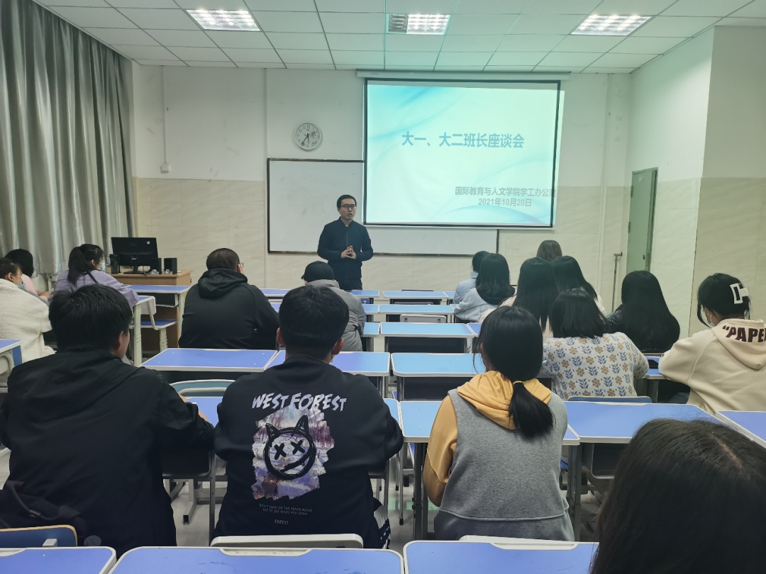 ? ? ? ? 10月20日17時,國際學院班長座談會在國際樓210教室開展,國際教育與人文學院副院長田永青主持。