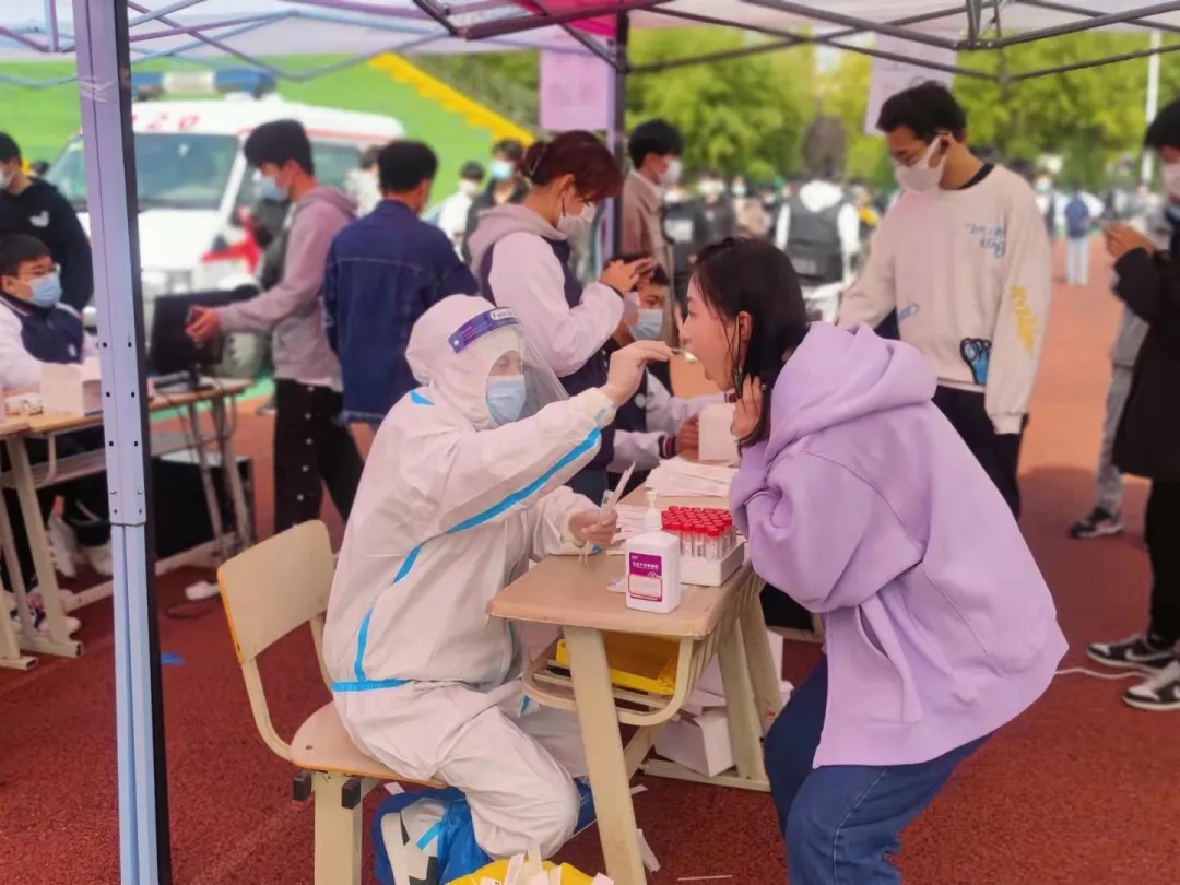 ? ? ? ?檢測過程,檢測區(qū)域組織安排有序,共設(shè)有4個(gè)入場口,4個(gè)候場區(qū),8個(gè)采樣點(diǎn),同時(shí)進(jìn)行采樣。學(xué)生干部依照學(xué)既定分組,積極配合各專業(yè)班級(jí)輔導(dǎo)員,有序組織現(xiàn)場學(xué)生排隊(duì)入場,時(shí)刻提醒學(xué)生在等待采樣時(shí),要佩戴好口罩,保持一米以上安全距離,并提前出示西安市民一碼通,全程跟隨學(xué)生完成核酸檢測相關(guān)流程。在全體學(xué)生干部的組織下,學(xué)生聽從指揮、不脫節(jié)、不擁擠、不混亂,現(xiàn)場秩序井然,提高了核酸檢測工作的效率。
