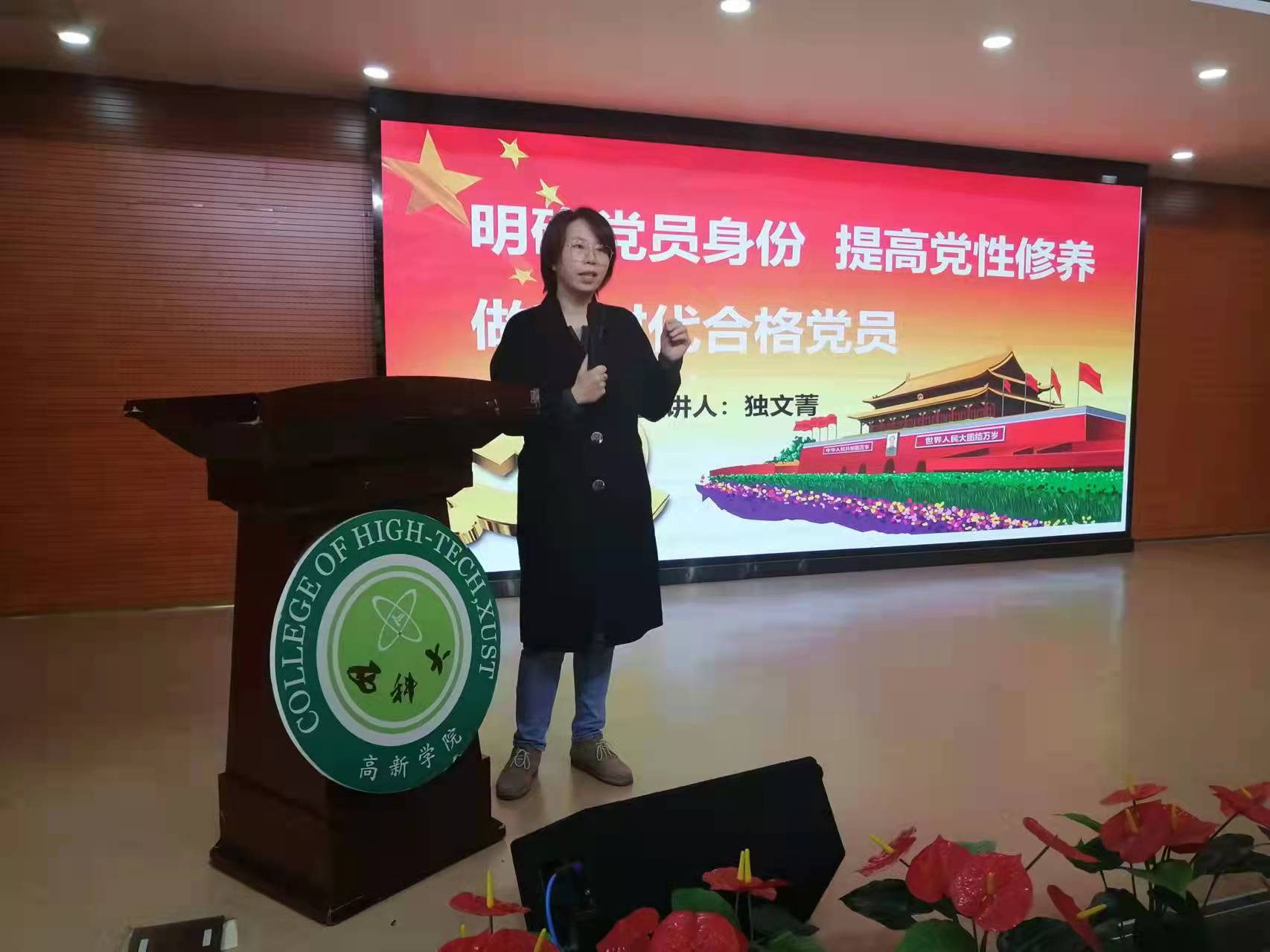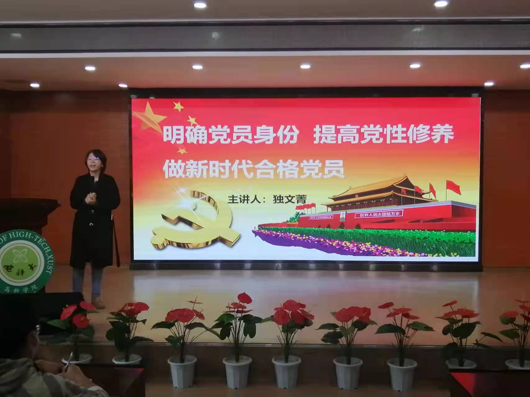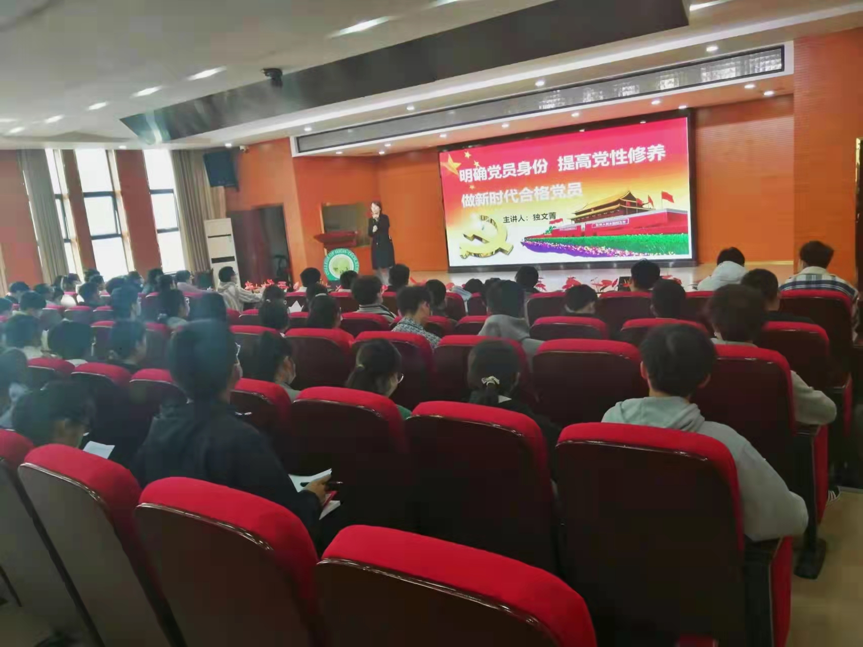 ? ? ? ?為幫助本期發(fā)展對(duì)象更好地明確黨員身份,提高黨性修養(yǎng),成為一名新時(shí)代的合格黨員。10月28日12時(shí),中共西安科技大學(xué)高新學(xué)院委員會(huì)業(yè)余黨校在南二報(bào)告廳開展積極分子第五節(jié)培訓(xùn)課,本節(jié)課由學(xué)院黨委委員、黨務(wù)辦公室主任獨(dú)文菁主講。
