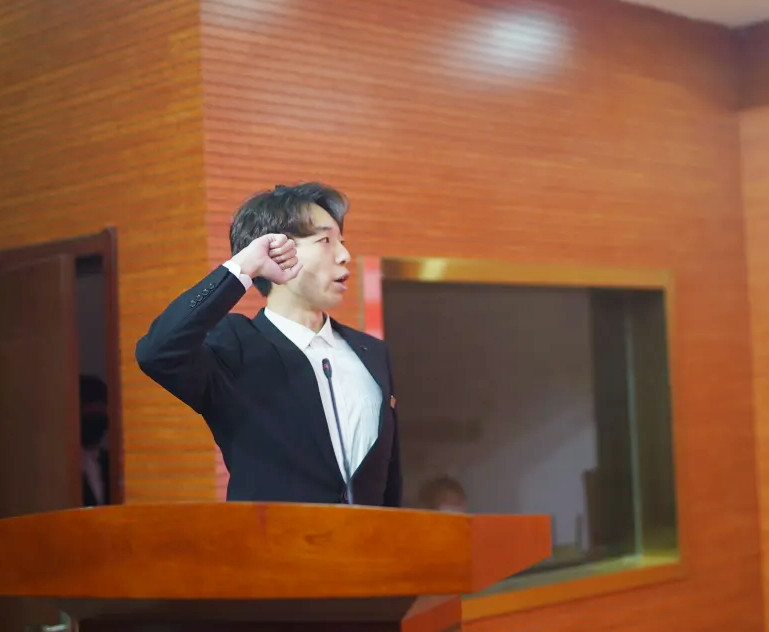 ? ? ? ?第十二屆大學(xué)生自律委員會負(fù)責(zé)人韓福偉首先感謝學(xué)院提供的展現(xiàn)自我,鍛煉自我的舞臺,向?qū)W長學(xué)姐表達(dá)了謝意。他表示在接下來的工作中要做到五點(diǎn)要求。一是處理好學(xué)習(xí)和工作關(guān)系。恪守學(xué)生本分,起模范帶頭作用;二是加強(qiáng)團(tuán)結(jié)合作,共同學(xué)習(xí),共同進(jìn)步;三是及時總結(jié)、積極創(chuàng)新,善于發(fā)現(xiàn)問題、解決問題;四是敢于自我剖析,嚴(yán)抓自身作風(fēng)建設(shè);五是牢記初心使命,要把為同學(xué)服務(wù)作為主要目的,實(shí)心實(shí)意幫助同學(xué)解決困難。打造一支“講奉獻(xiàn)、能吃苦、能戰(zhàn)斗”的學(xué)習(xí)型、服務(wù)型學(xué)生組織。韓福偉帶領(lǐng)大學(xué)生自律委員會所有成員宣誓。