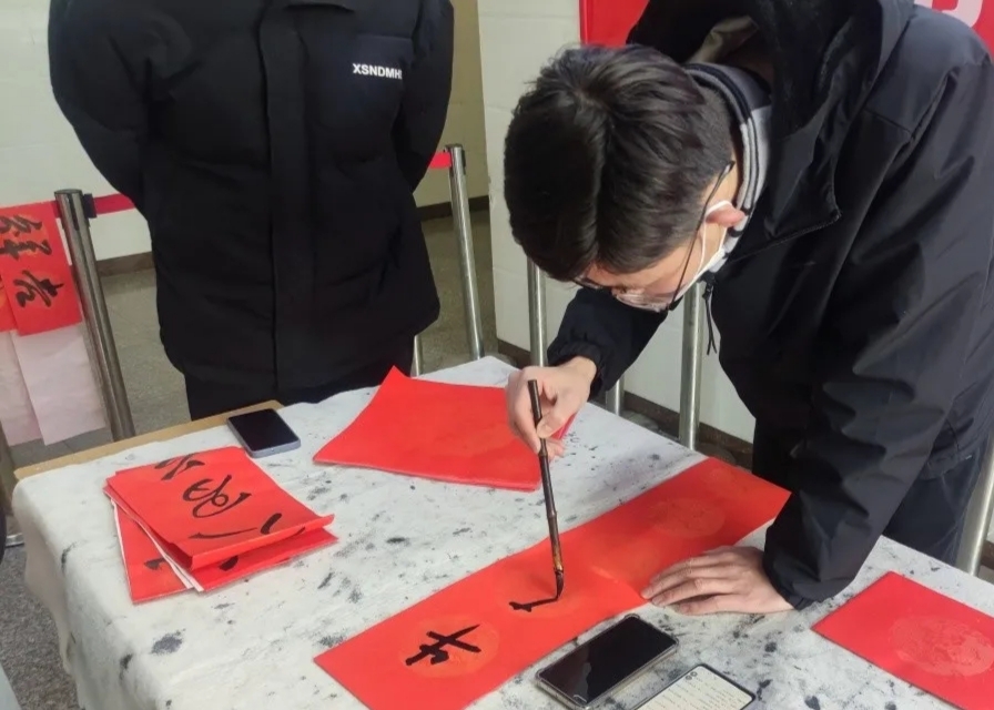 ? ? ? ?所謂“無(wú)聯(lián)不成春,有聯(lián)春更濃”。手寫春聯(lián),是筆尖上陳久彌香的年味;是民俗中傳承千年的寶藏;是記憶里紅紅火火的福祉。這一道道紅色的年味,更是老祖宗留傳千年的背影。走進(jìn)教學(xué)樓大廳的書寫現(xiàn)場(chǎng),大家瀟灑揮毫,各位老師率先帶領(lǐng)大家積極踴躍地參加到活動(dòng)中。