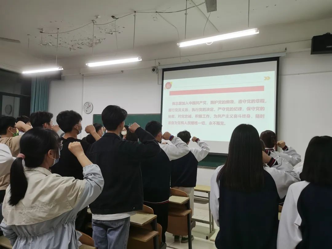 ? ? ? ?會(huì)議最后,同學(xué)們一起重溫入黨誓詞,進(jìn)行宣誓,作為有擔(dān)當(dāng)?shù)那嗄暌淮?,要珍惜時(shí)間求知上進(jìn)、愛國愛民愛校愛家、樹立自信胸懷壯志、勇?lián)姑鼕^發(fā)有為。
