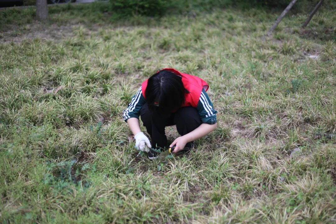 ? ? ? ? 促使提高勞動效率,后勤為大家準(zhǔn)備了除草工具,并且安排同學(xué)們分片區(qū)進(jìn)行除草。即使雜草旺盛、根系牢固,但這些困難絲毫沒有阻擋大家的勞動熱情,鏟子、手套等各種工具配合著徒手拔草齊上陣,雖然頭頂烈日、汗流浹背,但都毫不介意,個個干勁十足,呈現(xiàn)出一派熱火朝天的勞動場景。整個除草場面忙而不亂,井然有序,一個多小時的時間,同學(xué)們將區(qū)域內(nèi)的雜草全部清理完畢。
