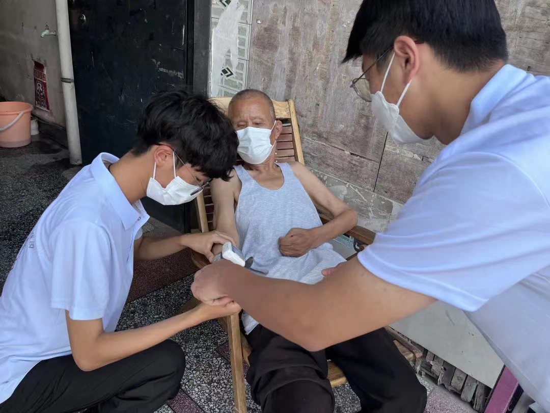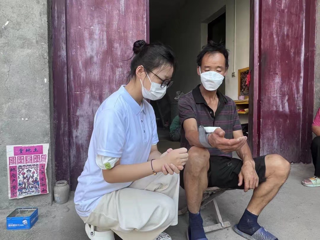 ? ? ? ?為普及疾病預防知識,提高村民健康水平。8月19日,“啟心傳情,同心振鄉(xiāng)”普法宣傳社會實踐團為焦鎮(zhèn)村老人測量血壓。