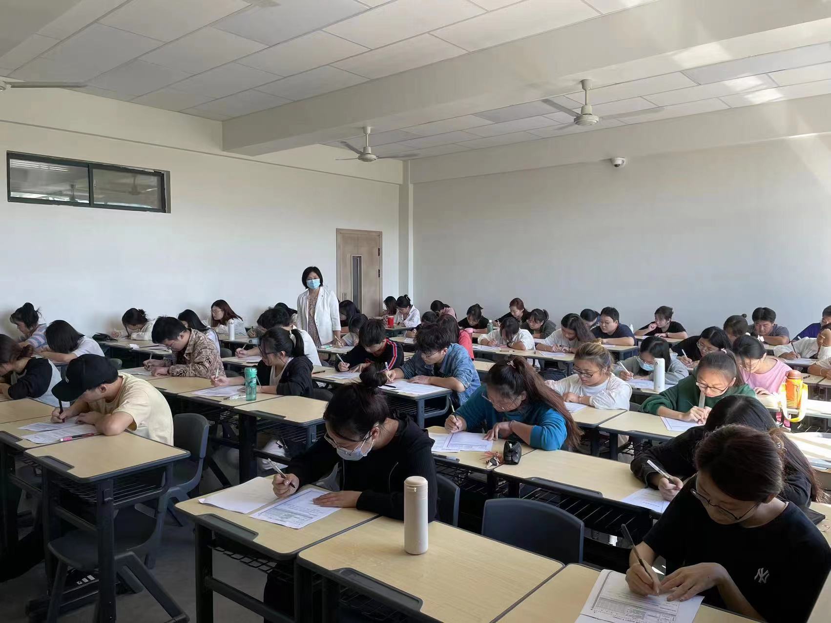 ? ? ? ?本次考試共設(shè)3個(gè)考場(chǎng),英語(yǔ)專業(yè)教研室劉岳勤老師、張萍老師、劉敏老師、李晴老師、張莎老師負(fù)責(zé)本次模擬考試的監(jiān)考及閱卷工作,劉清波老師、陳友艷老師對(duì)各考場(chǎng)進(jìn)行了巡查。