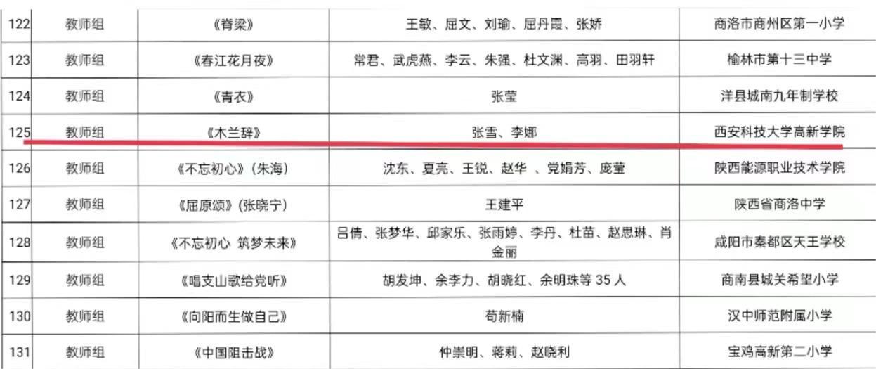 ? ? ? ? 在教師組中,由我院張雪、李娜教師共同創(chuàng)作的《木蘭辭》(指導(dǎo)老師:楊華)代表學(xué)校參與教師組比拼,在比賽中脫穎而出,榮獲陜西省教師組優(yōu)秀獎。