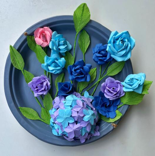 ? ? ? ?呂老師就同學們的設計作品進行一對一講解,并逐一指出問題,引導學生及時補正落實。在教學反思環(huán)節(jié),同學們以《紙盤手工藝術作品》為主題進行展覽,做出成果匯報。