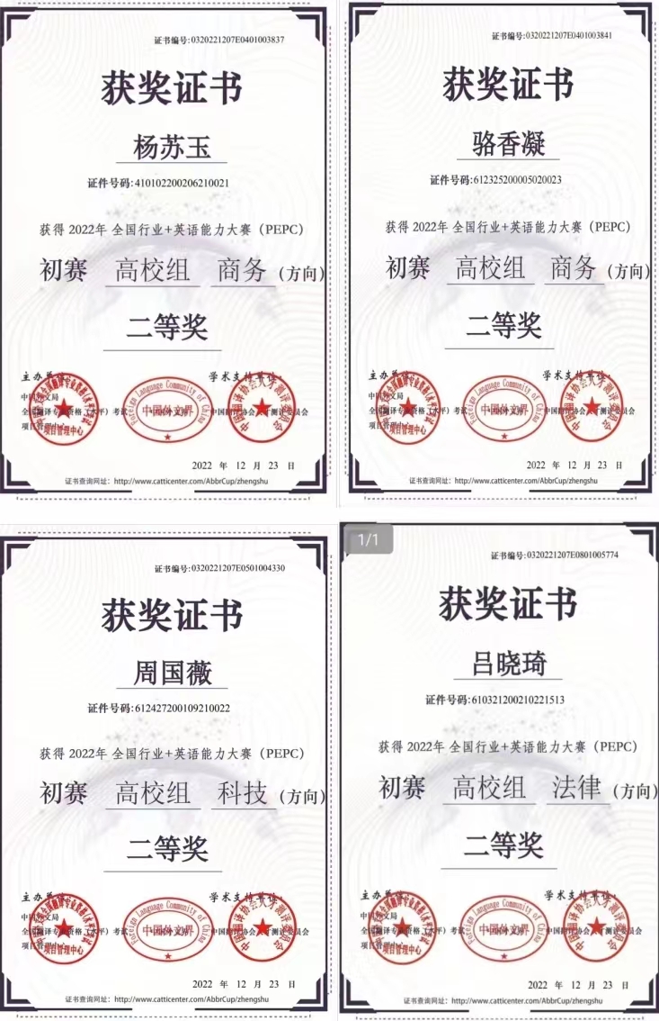 國際教育與人文學(xué)院學(xué)生在2022年全國行業(yè)+英語能力大賽榮獲佳績