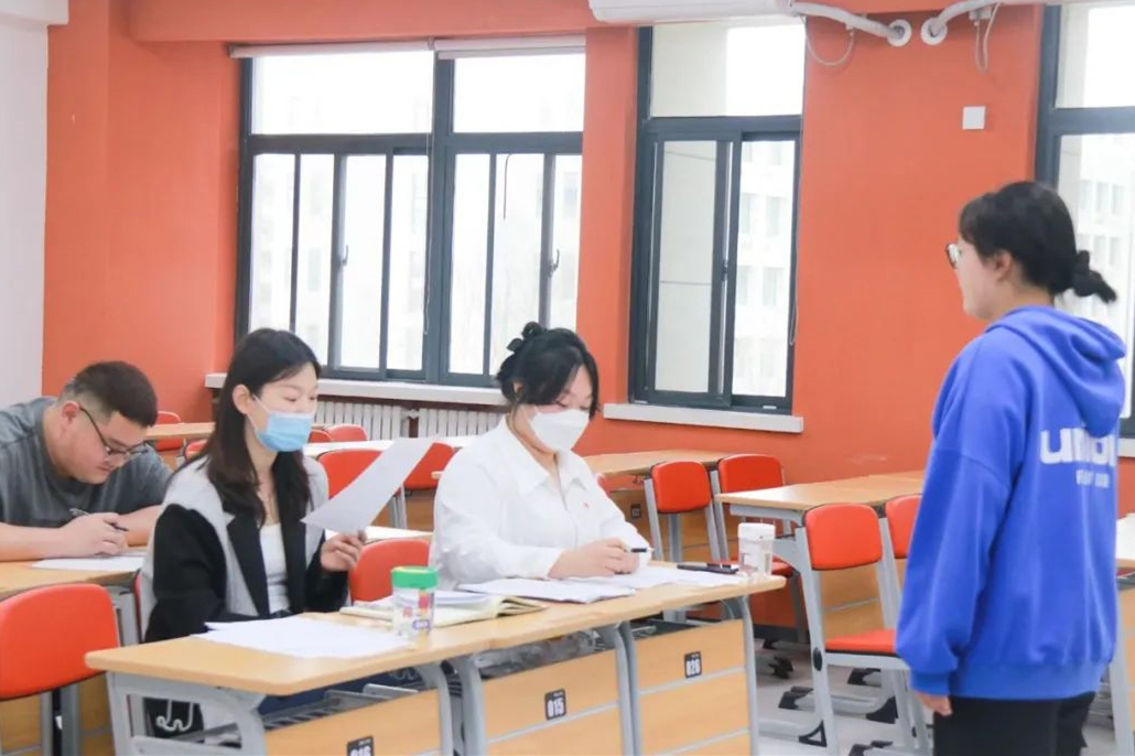 ? ? ? ?提問環(huán)節(jié)中,面試?yán)蠋焸兘Y(jié)合每位面試者的未來發(fā)展需要,從個人素養(yǎng)、業(yè)務(wù)能力和應(yīng)變能力等方面對面試者進行詢問了解,面對老師們嚴(yán)謹細致的提問,參選者們鎮(zhèn)定自然闡述了自身學(xué)習(xí)情況以及對未來工作的希望。