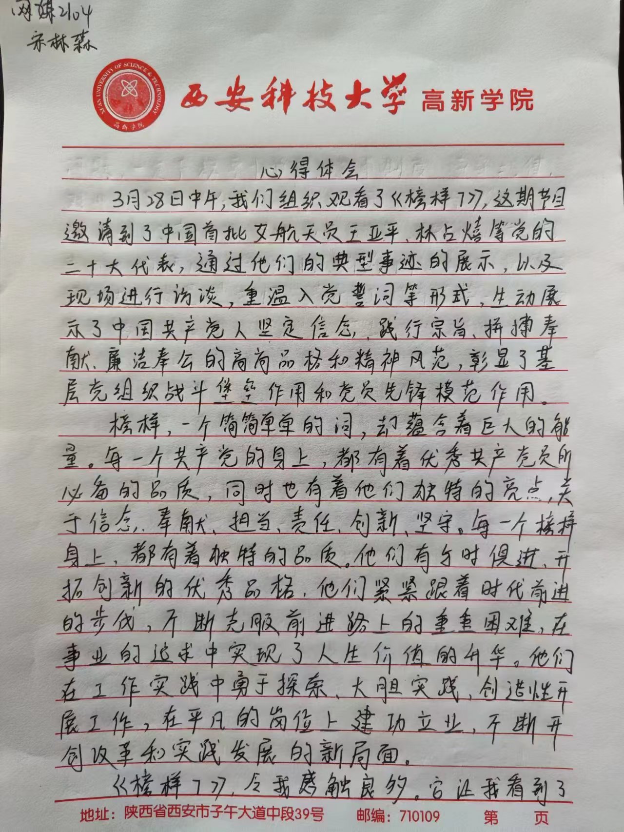 ? ? ? ?希望積極分子同學(xué)能通過這次觀影,學(xué)習(xí)《榜樣7》中的先進(jìn)代表,向榜樣看齊,向組織靠攏。銘記榜樣們想要傳達(dá)的精神,展現(xiàn)新時(shí)代新青年的風(fēng)采,心向榜樣、砥礪前行。
