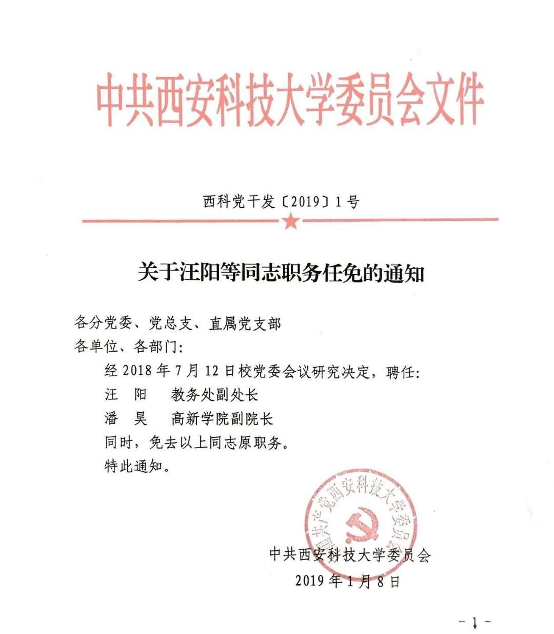 關(guān)于汪陽等同志職務(wù)任免的通知