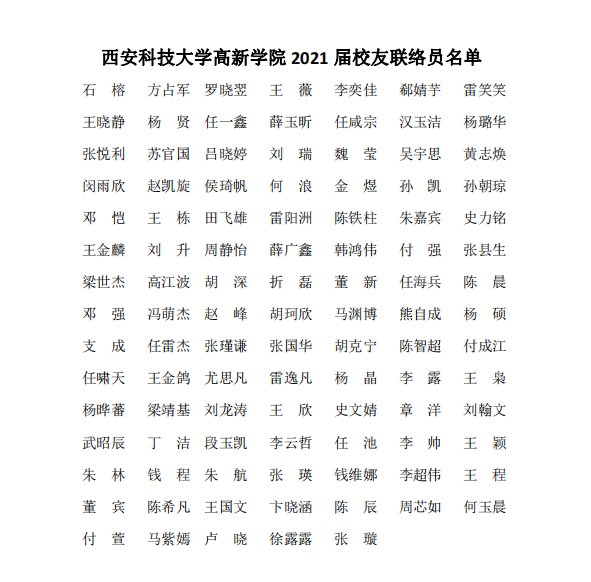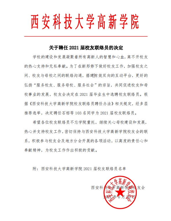 西安科技大學(xué)高新學(xué)院關(guān)于聘任2021屆校友聯(lián)絡(luò)員的決定