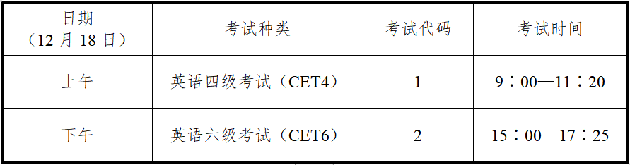 ? ? ? ?根據(jù)教育部考試中心《關(guān)于2021年下半年全國大學(xué)英語四、六級(jí)考試報(bào)名工作有關(guān)事宜的通知》(教試中心函〔2021〕97號(hào))安排,2021年下半年全國大學(xué)英語四、六級(jí)考試筆試(以下簡(jiǎn)稱CET)和口試(以下簡(jiǎn)稱CET-SET)分別將于12月18日、11月20至21日舉行?,F(xiàn)將考試報(bào)名工作有關(guān)事項(xiàng)通知如下: