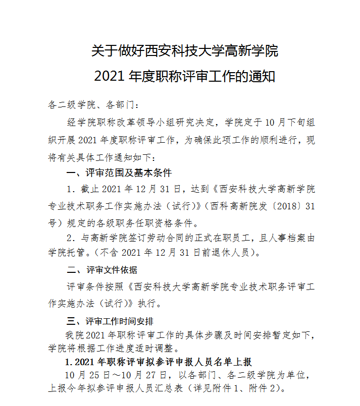 關(guān)于做好西安科技大學(xué)高新學(xué)院2021年度職稱評(píng)審工作的通知