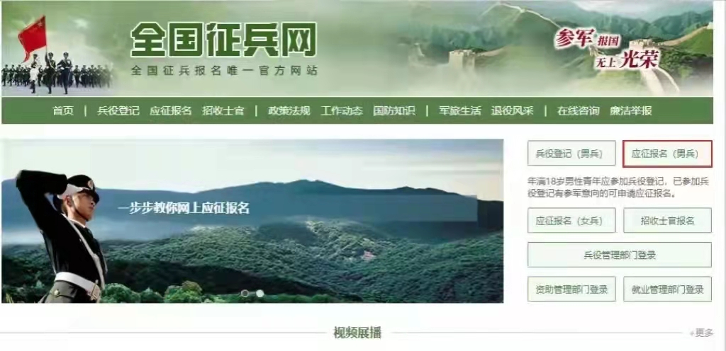 2.點擊頁面右部分的“應征報名(男兵)”;