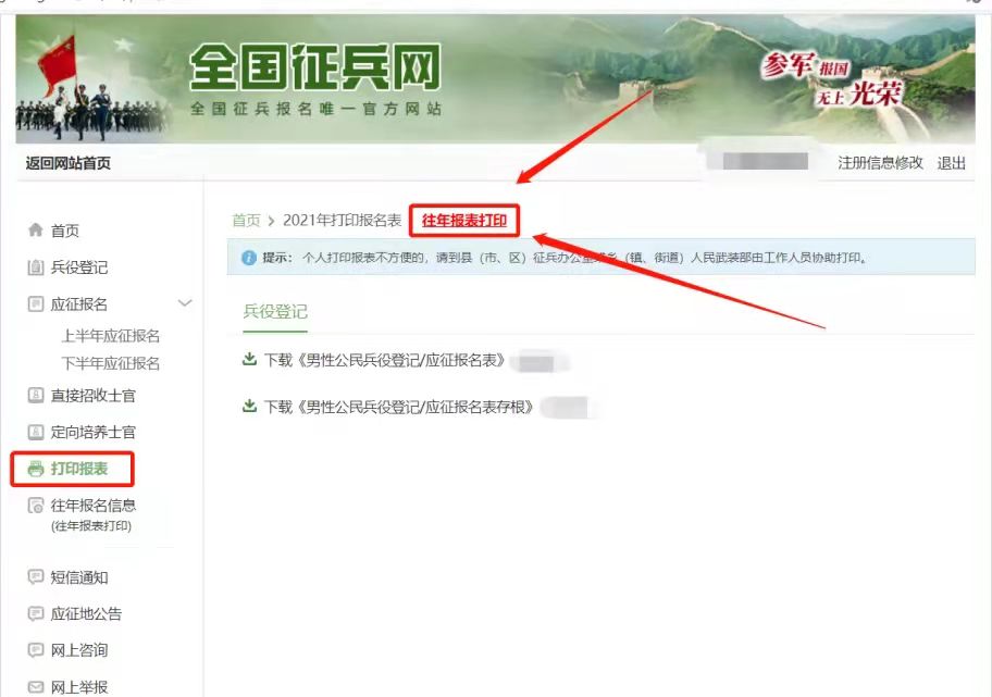 5.進入“打印報表”后,點擊“往年報表打印”;