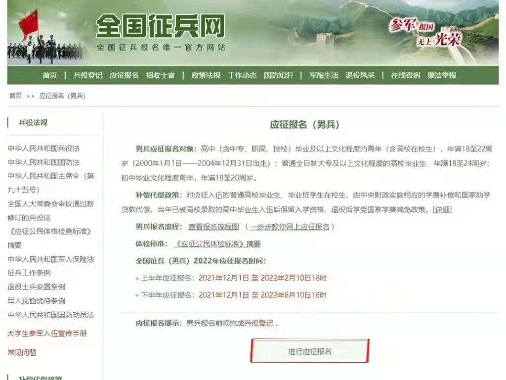 1.登錄全國征兵網(wǎng)(網(wǎng)址:https://www.gfbzb.gov.cn/);
