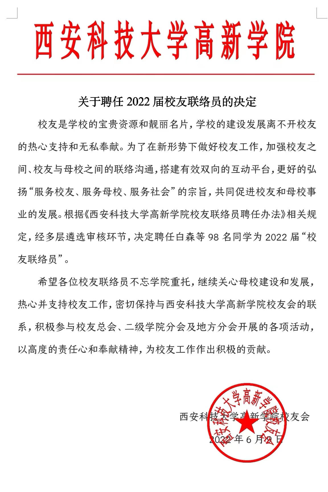 關(guān)于聘任2022屆校友聯(lián)絡(luò)員的決定