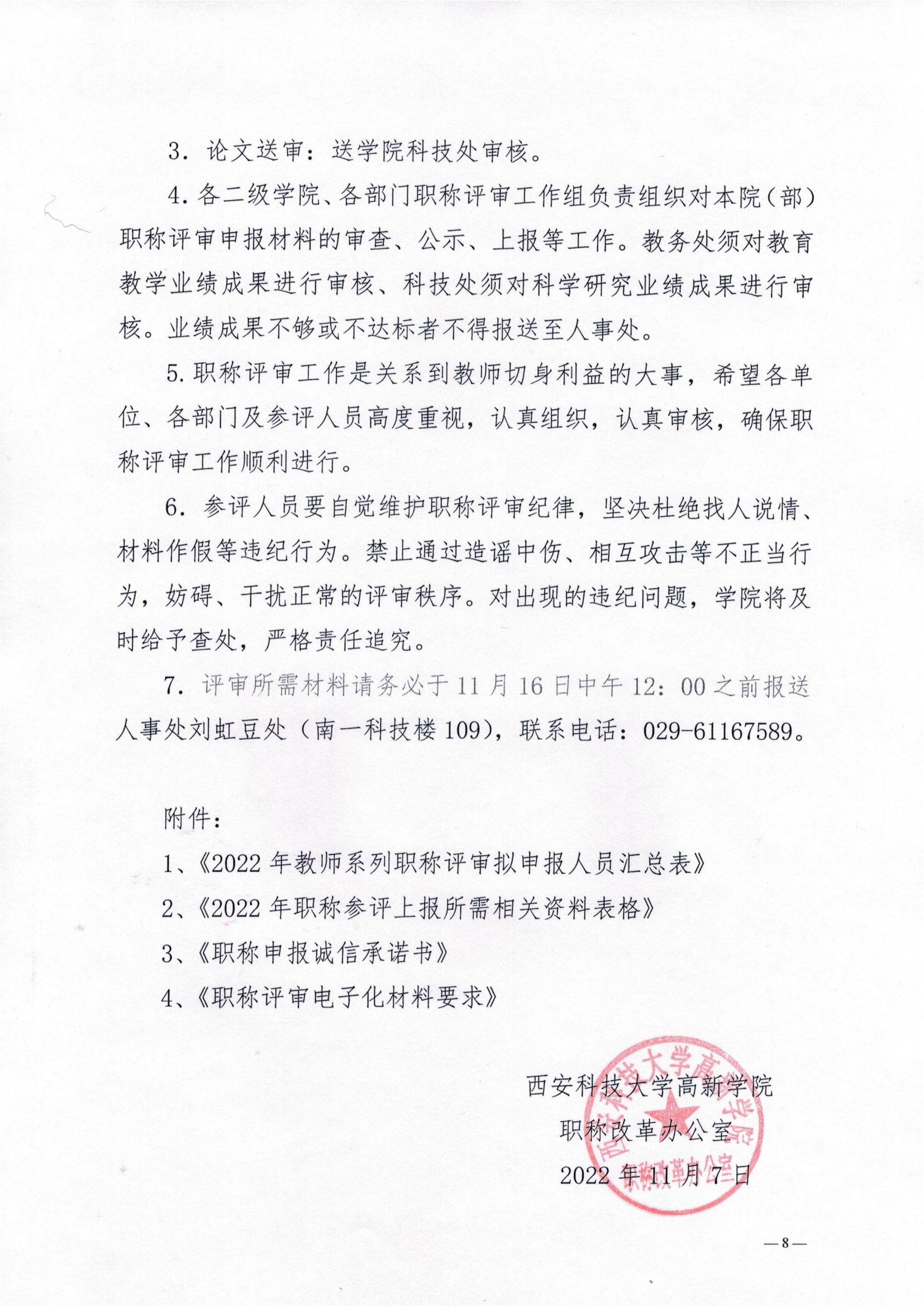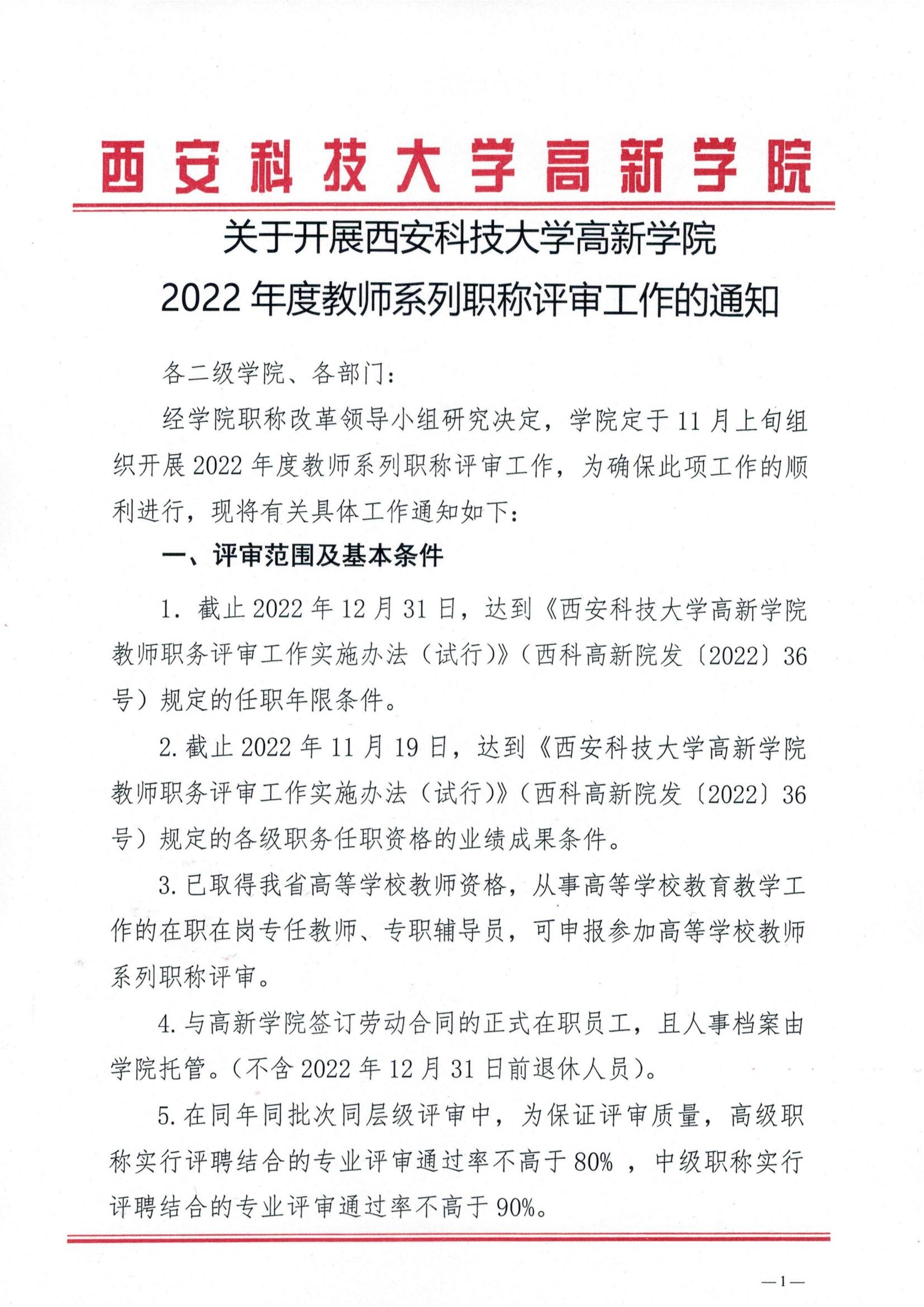 關(guān)于開展西安科技大學高新學院2022年度教師系列職稱評審工作的通知