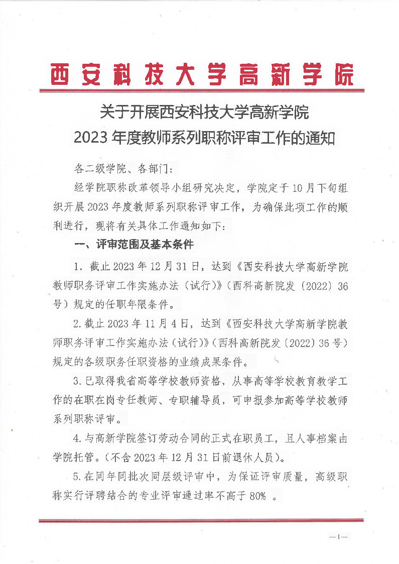 關(guān)于開展西安科技大學(xué)高新學(xué)院2023年度教師系列職稱評審工作的通知