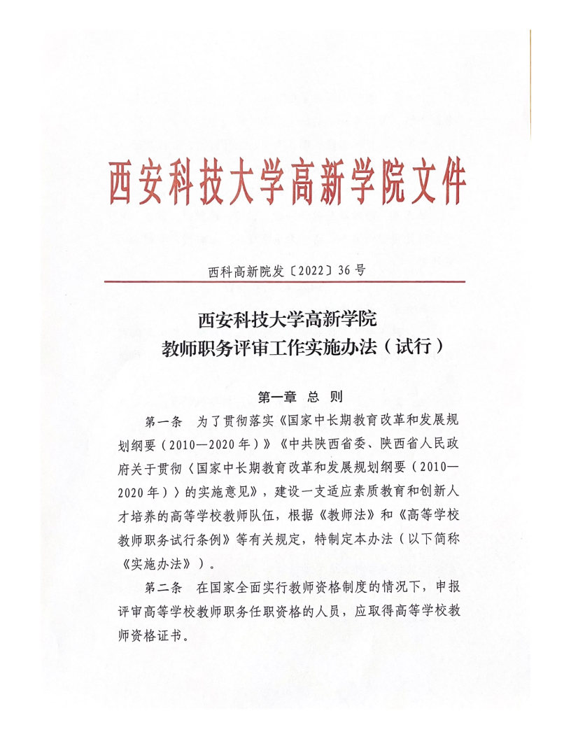 西安科技大學高新學院教師職務(wù)評審工作實施辦法(試行)