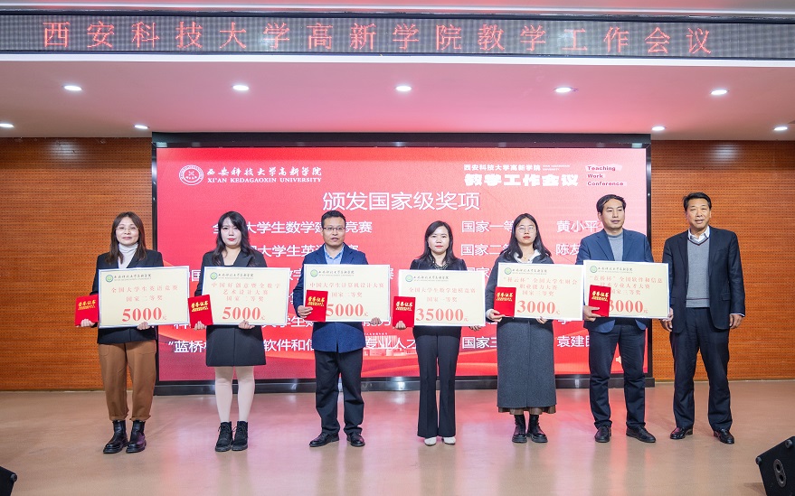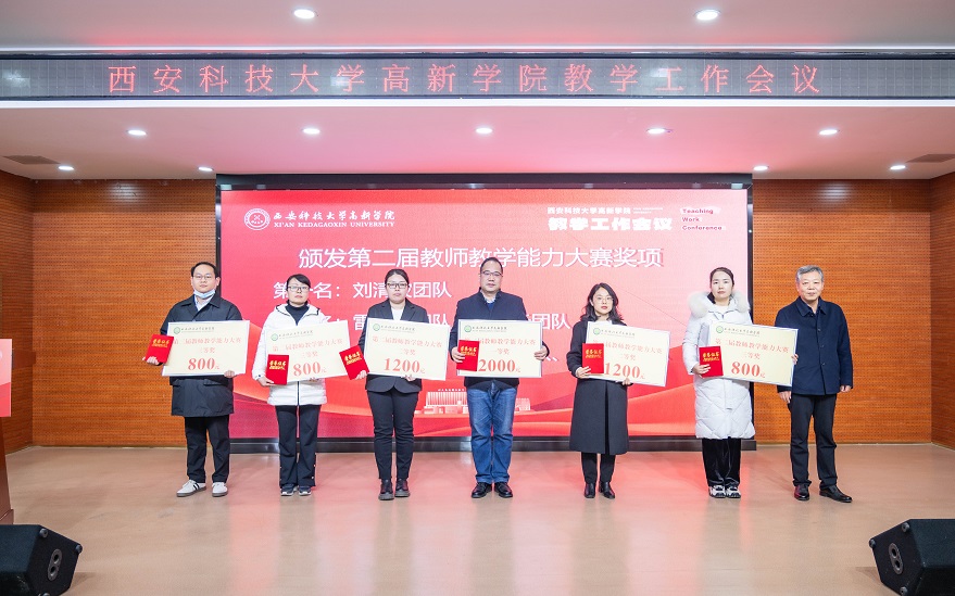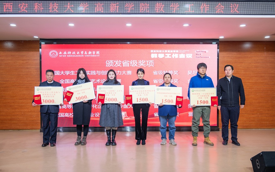 學(xué)院領(lǐng)導(dǎo)依次為西安科技大學(xué)高新學(xué)院第二屆教師教學(xué)能力大賽、省級(jí)學(xué)科競(jìng)賽、國(guó)家級(jí)學(xué)科競(jìng)賽獲獎(jiǎng)團(tuán)隊(duì)頒發(fā)證書和獎(jiǎng)金。