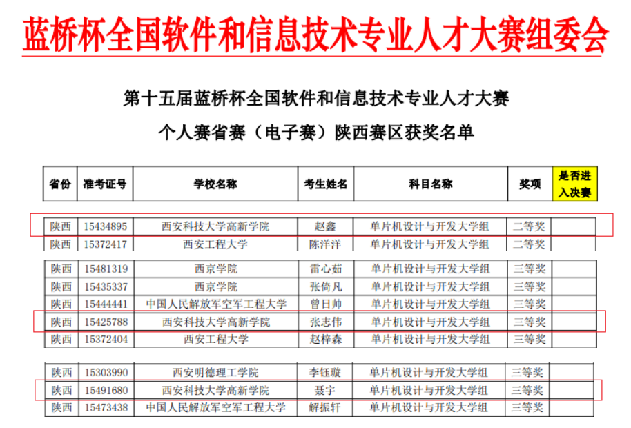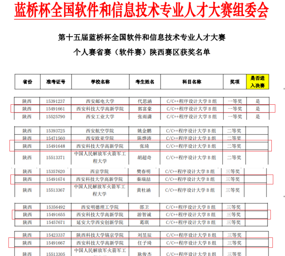 近日,第十五屆藍(lán)橋杯全國軟件和信息技術(shù)專業(yè)人才大賽省賽成績公布,西安科技大學(xué)高新學(xué)院共獲得16項(xiàng)省級獎項(xiàng),其中一等獎1項(xiàng)并晉級國賽、二等獎6項(xiàng)、三等獎9項(xiàng)。