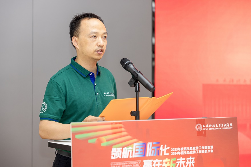 西安科技大學(xué)高新學(xué)院黨委書記劉琳宣讀《關(guān)于表彰2023年度招生工作先進集體、先進個人的決定》。對在2023年學(xué)院招生工作中表現(xiàn)突出的12支優(yōu)秀招生團隊和34名優(yōu)秀個人,予以表彰獎勵。