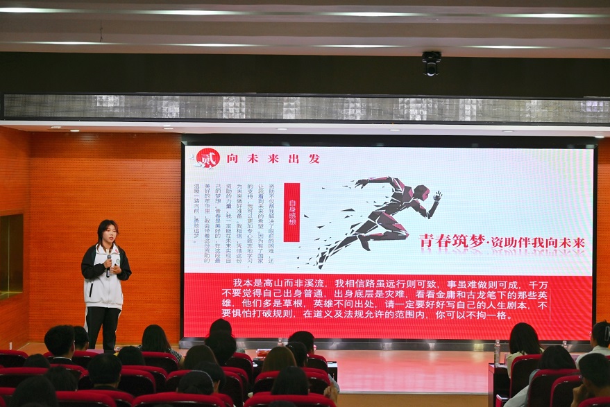 活動(dòng)開(kāi)始主持人羅雨露、李錦豪為大家詳細(xì)介紹比賽流程和評(píng)分細(xì)則后,比賽正式拉開(kāi)了帷幕。比賽現(xiàn)場(chǎng),選手們精神飽滿(mǎn)、自信大方,緊緊的圍繞“助學(xué)筑夢(mèng)亮青春底色,以聲傳學(xué)誦時(shí)代建設(shè)”的主題。演講內(nèi)容精彩務(wù)實(shí),條理清晰,他們用真摯的情感、昂揚(yáng)的風(fēng)貌,詮釋出新時(shí)代青年對(duì)國(guó)家資助育人的深刻理解。他們以自身經(jīng)歷,從不同視角講述國(guó)家資助育人政策對(duì)自己的幫助,他們談到國(guó)家和學(xué)校的幫助讓受助學(xué)子們學(xué)會(huì)了“知恩、感恩”,增強(qiáng)同學(xué)們的責(zé)任感、使命感,激勵(lì)更多同學(xué)勵(lì)志成才、回報(bào)祖國(guó)。