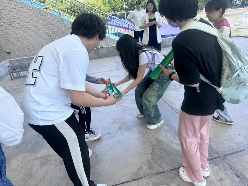 隨后,“不倒森林”項(xiàng)目接踵而至,每位同學(xué)手持一根細(xì)長的竹竿,在不借助任何外力的情況下,通過移動和交換位置,保持所有竹竿直立不倒。這項(xiàng)活動極大地考驗(yàn)了團(tuán)隊(duì)的平衡感與默契度,每一次的成功站立都是對團(tuán)隊(duì)精神的最好詮釋。