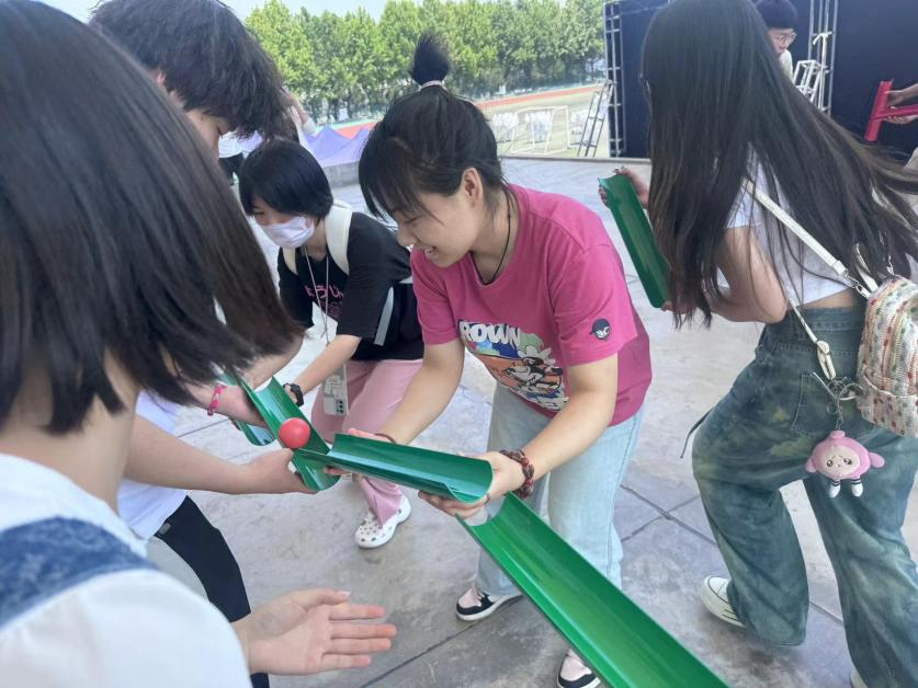 熱身過后,正式的活動環(huán)節(jié)如約而至,每一項(xiàng)游戲都精心設(shè)計(jì),旨在全方位提升同學(xué)們的團(tuán)隊(duì)協(xié)作能力。首先登場的是“珠行萬里”,同學(xué)們需手持特制管道,通過無縫銜接將小球從起點(diǎn)運(yùn)送到終點(diǎn)。起初,面對頻繁掉落的珠子,大家顯得有些手忙腳亂,但隨著時(shí)間的推移,團(tuán)隊(duì)間的溝通與協(xié)作愈發(fā)默契,最終成功完成了挑戰(zhàn),展現(xiàn)了團(tuán)隊(duì)協(xié)作的無限可能。
