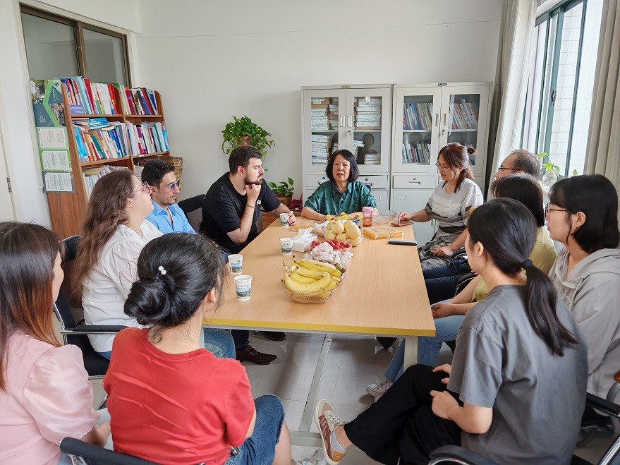 聯(lián)誼活動(dòng)中,劉院長(zhǎng)首先對(duì)外籍教師的教學(xué)工作給予了充分的肯定,并代表學(xué)院向外籍教師贈(zèng)送中秋禮物,期待他們?cè)谝院蠊ぷ髦懈映錾谋憩F(xiàn)。接著,劉院長(zhǎng)向外籍教師介紹了中國(guó)中秋節(jié)的傳統(tǒng)習(xí)俗和特色美食,英語(yǔ)教研室的教師們和外籍教師們共同分享了彼此文化中關(guān)于教師節(jié)和中秋節(jié)的文化典故。最后,3位外籍教師分別為我院師生送上的美好的節(jié)日祝福,祝愿大家教師節(jié)、中秋節(jié),雙節(jié)快樂(lè)!