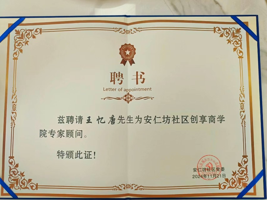 【新傳媒與藝術(shù)學(xué)院】王印堂老師受聘安仁坊社區(qū)創(chuàng)享商學(xué)院專家顧問