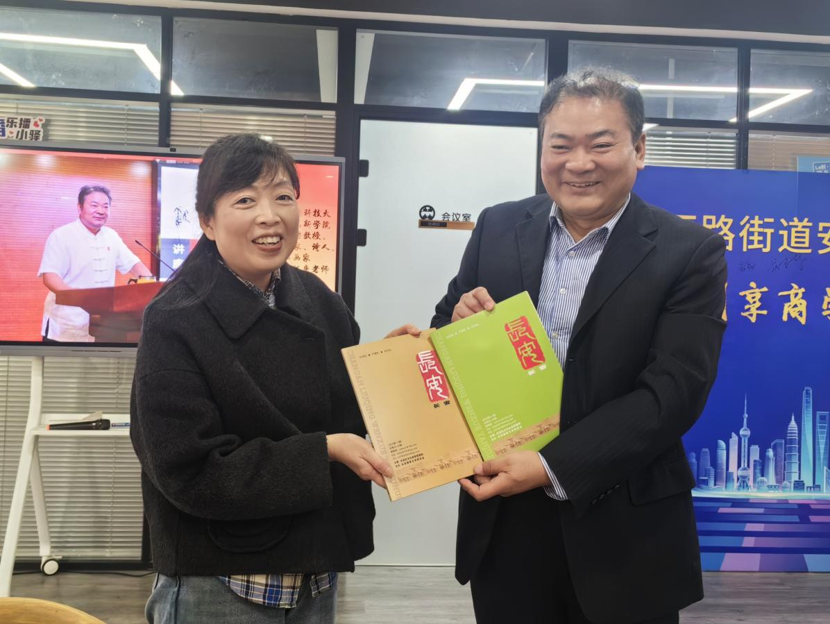 王印堂老師在接受聘書時表示,他非常榮幸能夠成為安仁坊社區(qū)創(chuàng)享商學(xué)院的專家顧問。他深知這一角色的重要性,也深感責(zé)任重大。他承諾將全力以赴,為商學(xué)院的發(fā)展貢獻自己的力量,為社區(qū)居民和創(chuàng)業(yè)者提供專業(yè)的指導(dǎo)和支持。同時,王老師為創(chuàng)享商學(xué)院題寫書法院名,并開講商學(xué)院第一課《人力資源管理》,還現(xiàn)場為安仁坊社區(qū)婦聯(lián)巾幗書坊捐贈了自己主編的兩期《長安》文學(xué)雜志。