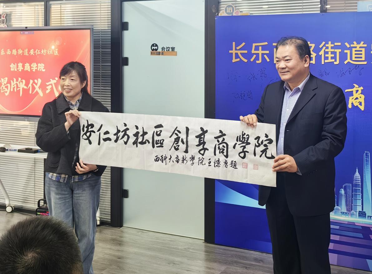 在活動中,長樂西路街道辦事處主任張亮亮和安仁坊社區(qū)主任王燕共同為安仁坊社區(qū)創(chuàng)亨商學(xué)院揭牌,王印堂老師作為社區(qū)創(chuàng)享商學(xué)院的專家顧問,將為社區(qū)居民和創(chuàng)業(yè)者提供專業(yè)的指導(dǎo)和培訓(xùn),推動社區(qū)創(chuàng)新創(chuàng)業(yè)氛圍的形成和發(fā)展。