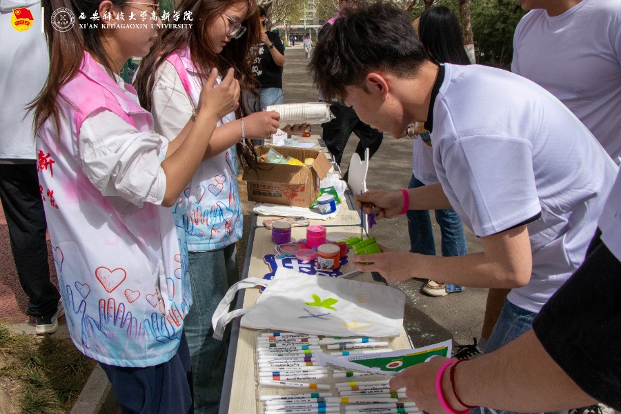 活動(dòng)正式開啟后,師生們手持打卡點(diǎn)地圖,在工作人員引導(dǎo)下穿梭于校園各處。一路上,色彩噴驚喜不斷,大家盡情釋放青春活力?;顒?dòng)環(huán)節(jié)豐富多樣,樂趣十足。在“袖藏斑斕,印刻時(shí)光”環(huán)節(jié),同學(xué)們學(xué)習(xí)印染知識(shí)與技巧,制作專屬 T 恤,融入個(gè)性與創(chuàng)意。“帆布創(chuàng)意,包羅萬象”環(huán)節(jié),同學(xué)們在帆布包上繪制各種圖案,展現(xiàn)無限想象力與創(chuàng)造力。“波波幻境,彩繪星球”中,同學(xué)們合繪透明波波球,將其變成藝術(shù)品,增進(jìn)了彼此間的友誼。“葉影拾光,印刻自然”和“塑影拓繪,手中生花”讓同學(xué)們領(lǐng)略到自然與藝術(shù)融合的魅力,創(chuàng)作出許多精美作品。“幻彩泡珠,拾憶童年”則帶領(lǐng)大家重溫童年,DIY 色彩水寶寶許愿瓶,承載著甜蜜回憶與美好憧憬。