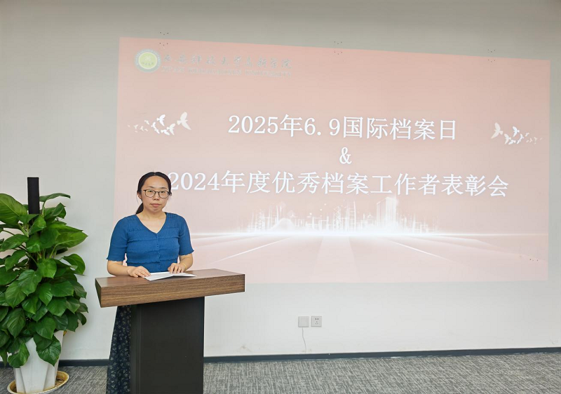 為了推動學(xué)院文件立卷、歸檔工作的制度化、規(guī)范化建設(shè),充分調(diào)動檔案人員工作積極性,激勵先進(jìn),全面提高我校檔案管理水平。6月4日下午,檔案館在日新樓一樓會議室召開2025年國際檔案日暨2024年度學(xué)院優(yōu)秀兼職檔案工作者表彰大會。西安科技大學(xué)高新學(xué)院院長助理胡秋實、圖書檔案館館長原艷麗、檔案館全體人員以及各部門、各二級學(xué)院兼職檔案員共46人參加了本次大會,會議由原館長主持。首先原館長介紹了國際檔案日的由來和今年檔案日系列主題活動。館長助理薛敏對2024年度各部門文件立卷歸檔工作做總結(jié)。